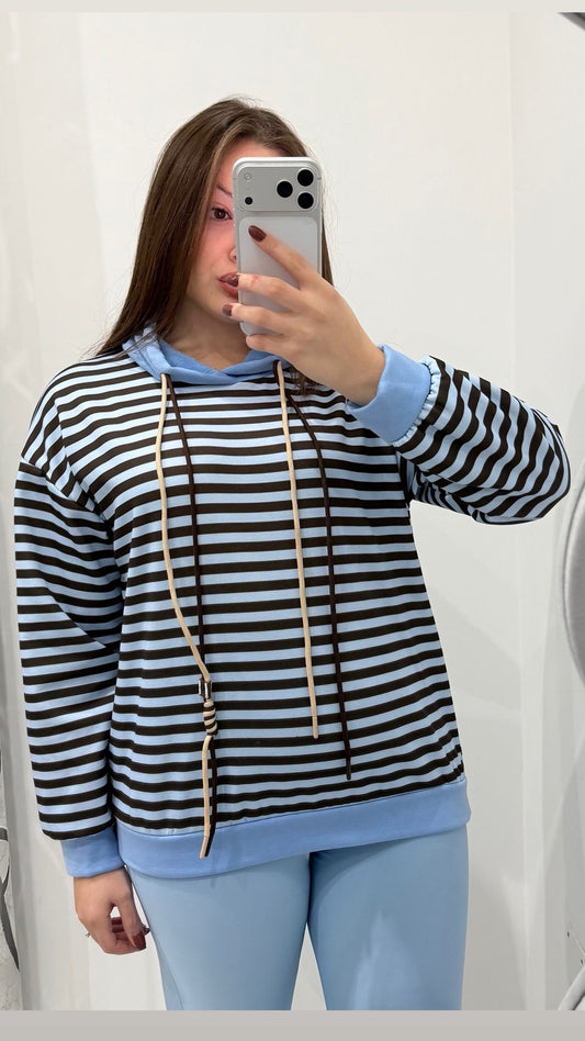 Felpa Trend a Righe con Cappuccio